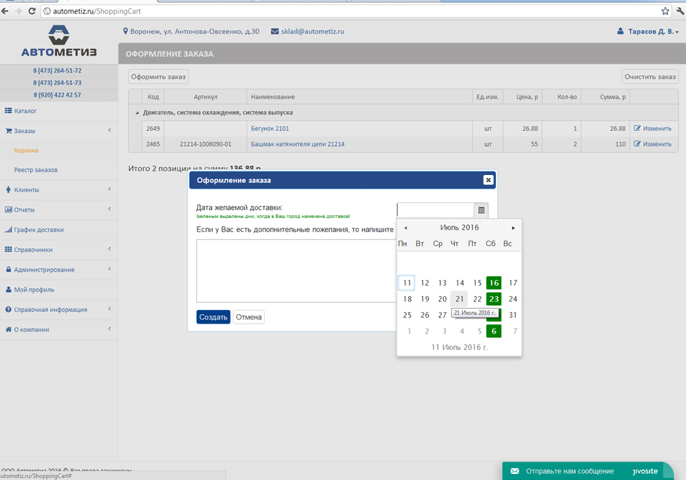 Делайте заказ в любое удобное для Вас время! Не теряйте своих клиентов при заказе товара!